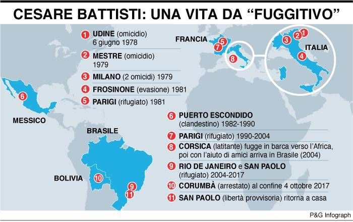 "Non sappiamo su cosa si baserà l'ufficio legale della presidenza in modo che io possa essere estradato", aggiunge Battisti. "Non so se il Brasile voglia macchiarsi sapendo che il governo e i media hanno creato questo mostro in Italia. Mi consegneranno alla morte", afferma l'ex terrorista condannato in Italia a quattro ergastoli.