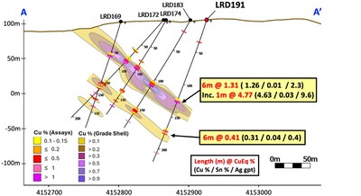 11111"The La Romana mineralized trend shows excellent continuity extending over 1.7km east-west. The latest drill results extend the higher-grade copper-tin mineralization down-dip, confirming that it remains open to the north and northwest. Copper mineralization identified in the hanging wall and footwall of the main mineralization body could potentially be captured in a conceptual open pit. Additional step out drilling planned for 2026 is expected to further extend the strike of La Romana mineralized trend," said Tim Moody, President and CEO.