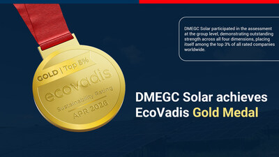 JINHUA, China, April 20, 2026 /PRNewswire/ -- On April 15, DMEGC Solar, a global leader in magnetic materials and renewable energy solutions, achieved a milestone breakthrough in sustainable development. With outstanding performance in environmental protection, social responsibility, and other key areas, the company earned a Gold Medal from the internationally recognized rating agency EcoVadis, scoring 82 points. This places DMEGC Solar in the top 3% of all rated companies worldwide, surpassing 97% of participants.